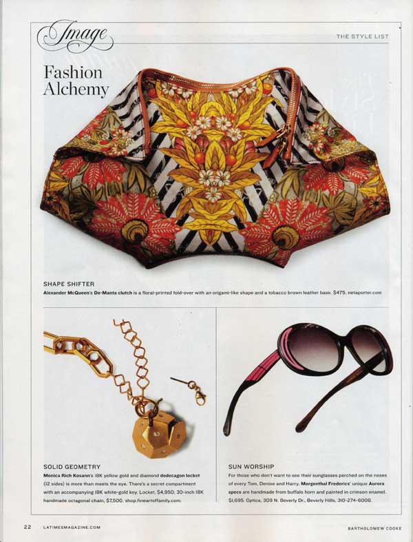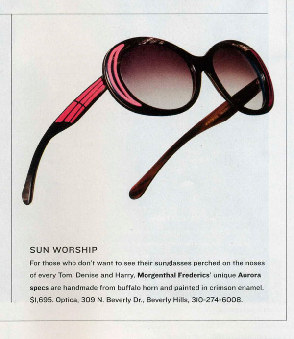 Morgenthal Frederics, Aurora frame style in genuine buffalo horn featured in Los Angeles Times Magazine, April 2011.